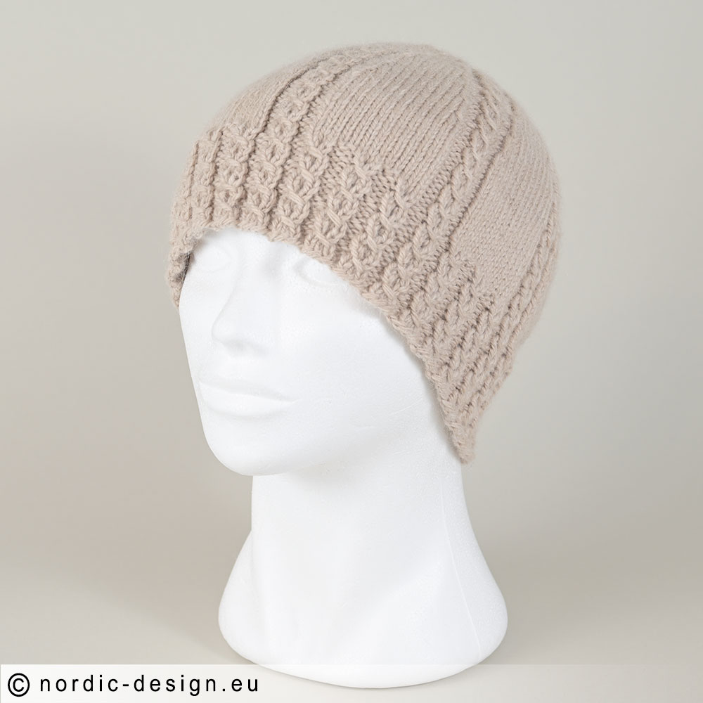 Ett mönster med både mössa och vantar. Till alla som vill ha en fin, enfärgad, dekorativ mössa / vantar men som också är väldigt enkelt att sticka.